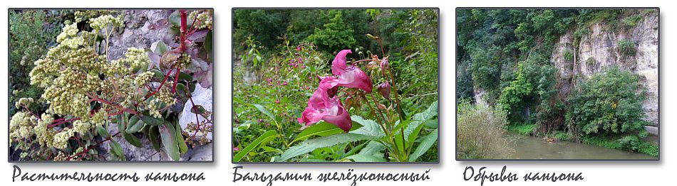 Благодаря тому, что авторы всего, мною прочитанного, старательно обходили вниманием Смотричский каньон, знакомство с ним стало для меня открытием. Свернув с проторенного экскурсионного маршрута и забравшись куда-то в глушь, я вдруг очутилась в настоящих джунглях. Впереди стеной поднимался совершенно отвесный известняковый утес, на котором, как экзотические лианы свисали корни деревьев и зеленые ламбрекены растительности. Никакой-тебе равнинной пасторальности. Это был дикий, полный динамизма пейзаж, обычно свойственный горным, да еще и более южным, регионам. У воды, в зарослях трав, виднелись какие-то невиданные (для меня, по крайней мере) бледно-красные цветы причудливой формы. Они настолько меня поразили, что я полезла к ним, ругая крапиву, коварно затесавшуюся в общество благородных растений и радуясь, что Смотрич не Амазонка, иначе бы вместо неказистой крапивы, торчали бы тут ветки какого-то смертельно ядовитого стрихноса.